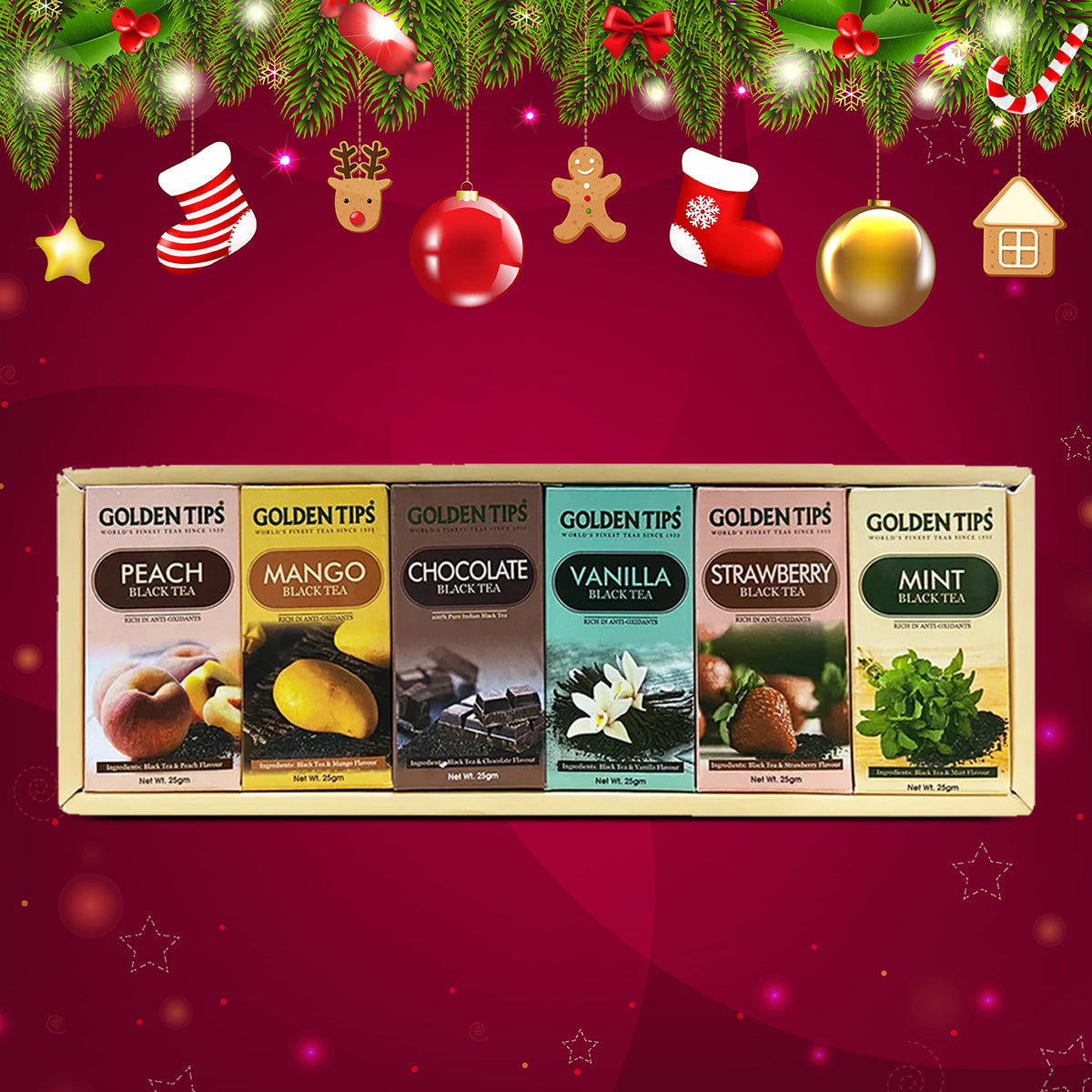 A unique ensemble of six different Flavoured Black Teas - Peach, Mango, Chocolate, Vanilla, Strawberry & Mint packed in individual cartons. These delightful Flavoured Teas are sure to overwhelm any tea connoisseur and are a great gift option for any occasion.