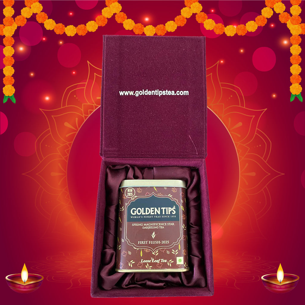 This Diwali, gift more than just sweets — gift warmth, wellness, and unforgettable flavour. Golden Tips Tea brings you a curated collection of premium tea hampers featuring our finest Darjeeling teas, spiced Masala Chai, herbal infusions, and elegant tea accessories. Each hamper blends the rich heritage of Indian tea with modern festive luxury — perfect for family, friends, or corporate gifting. Thoughtfully packed in festive tins and handcrafted boxes, our tea gifts symbolize togetherness, good health, and celebration in every sip.